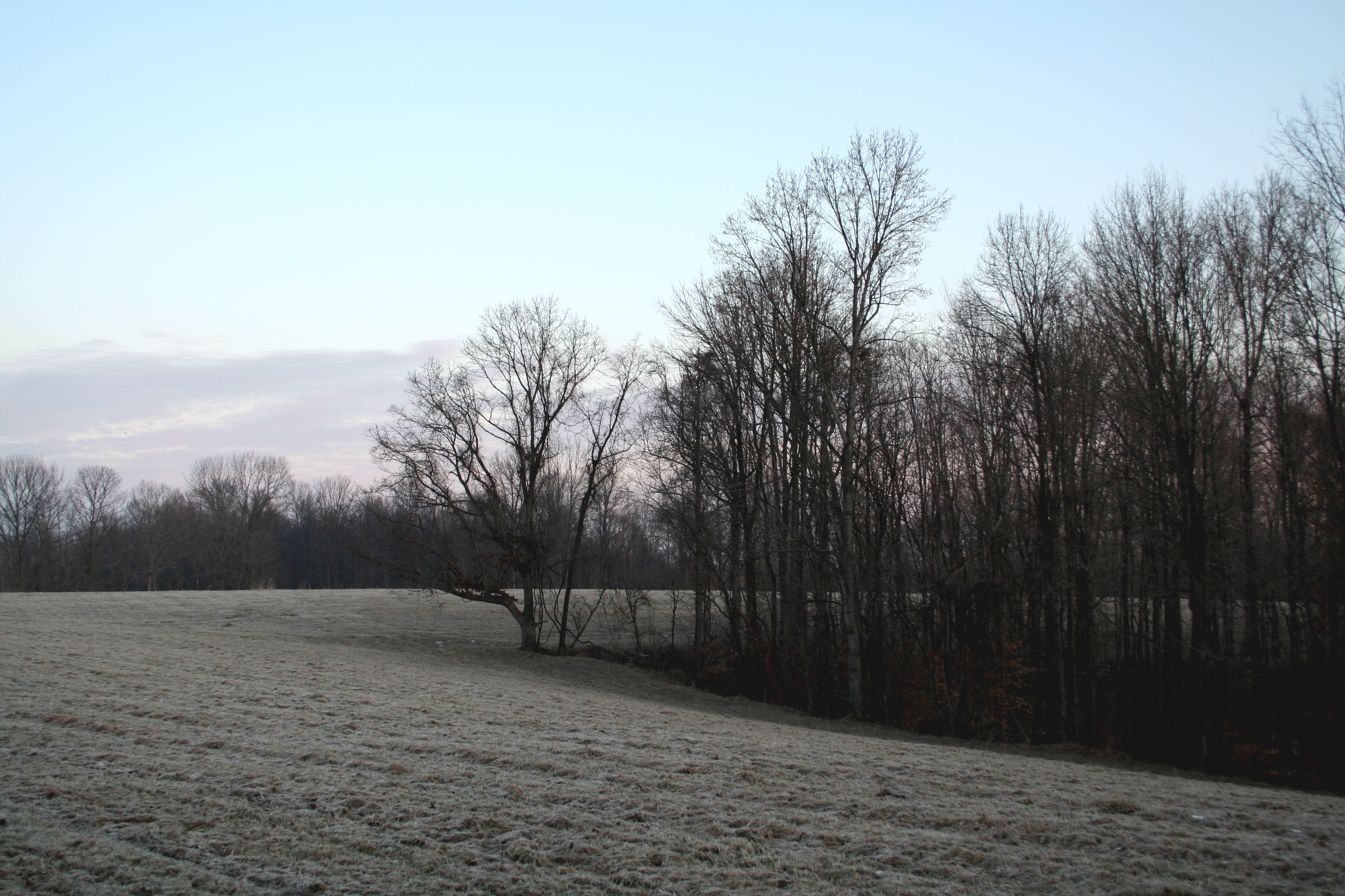 It was a good opportunity to observe the wet areas between the ponds, where surface moisture persists in scattered depressions in all but the driest months. The folks had mentioned standing water in the fields over the years, but I’d not had the chance to assess the boundaries of where this occurs; this trip I was able to see the acre or so of what may very well be permanent wetland that appears to be spring-fed, draining slowly to either side of the crest of the top pasture into the two ponds. I will stake it out in the spring when we are back, and let it alone to see what it does through the seasons. It may be an ideal place for a wetland hedgerow of native plants; though it would take some pasture out of production, there is much benefit to be derived from the diversity of another plant community on the farm.