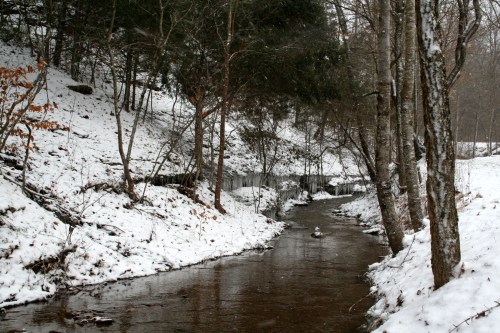 The cold kept my photo-documentation of this trip to a bare minimum, I’m sorry to say. It was too cold and I was too busy to set the camera up for self-shots; too cold also, to get the Bear to lend a hand and work the shutter. So it goes. I managed a couple of stomps around to take a few pictures of the wintry roads, the house and shop, the icicle-adorned creek, the snow-frosted pastures and pond, but of the projects and work accomplished, nothing.