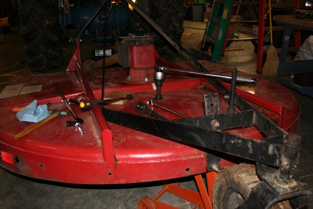 Yesterday we changed the blades on the Bush Hog, which isn’t a one-person task by any stretch of the imagination. It was a little more difficult than it had to be, owing to the ginormous socket getting stuck on the nuts after torquing them to 600 ft/lbs. I think we used the wrong size socket but you know, it turned out ok anyway and we needed the gear puller I had to go into town and buy to pull it off, so I’m not arguing. New blades will make clipping and mowing pastures so much easier on the tractor, and the tractor operator, too.