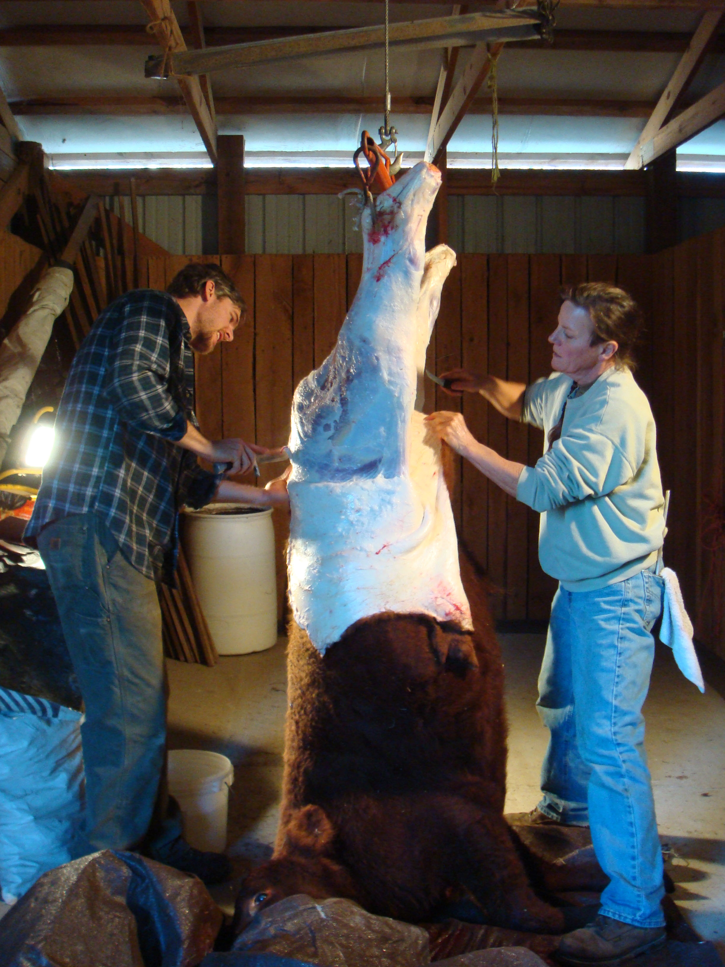 This was the first time for both of us to skin and eviscerate a bovine. We had a couple of books to guide us, and our past experiences field-dressing deer, but mostly we learned as we went, working together to remove the hide and carefully releasing the body cavity contents. I can say this much: it is easier to field dress a deer, or even an elk. Cows have so many stomachs! I had withheld fresh hay since the day prior, but his system was still very full and very heavy.