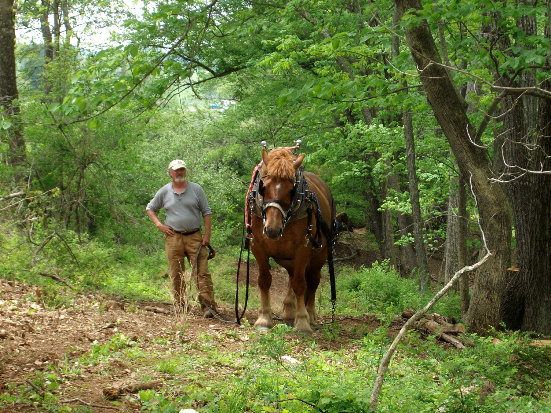 Although I’ve had a life-long love of horses and have owned a few saddle horses in my time, the use of workhorses on a small diversified farm grabbed my interest hard about the same time I realized that farming was my calling.   Many if not all of a small holding’s pasture, road and field maintenance as well as woodland work can be done with actual horse power; in most cases better (and quieter) than a tractor, with far less negative impact on the land.  Horses also contribute nutrients with their manure, and lawn-mowing can be a side benefit if you are so inclined to set up moveable paddocks where you want grass nipped short.